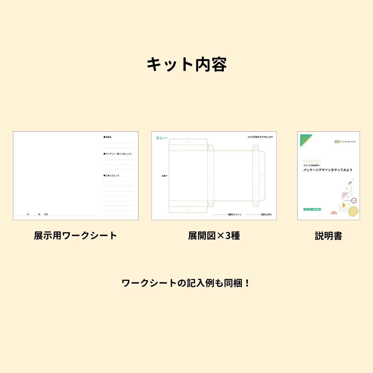 このキットでは、実際に手を動かしながら、「思わず手に取りたくなるパッケージデザイン」をサクっと体験できます。